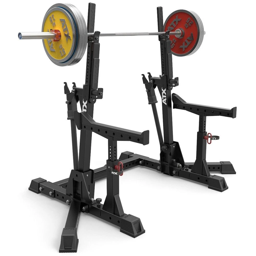 The telescopic barbell holders can be precisely positioned, or be inclined by 6.5 ° inward to allow the athlete the barbell with a wide grip to hold it.