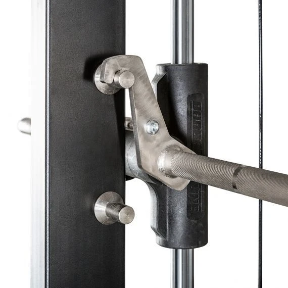 The smith machine and half rack are tested to heavy loads of 300kg and are certified as such to EN 20957 I.II.IV Class S. standard. The foldable dip bars are rated to 160kg.