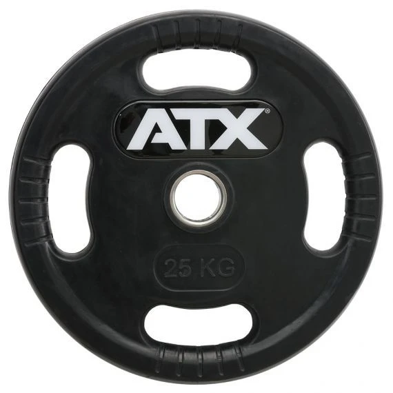 ATX Rubber-Coated Olympic Grip Weights. One of our most popular weight plate options. We introduced the logo option (ATX) rubber-coated weights to the range after supplying them alongside Barbarian and ATX gym equipment many times. These are a good quality olympic weight and perform well.